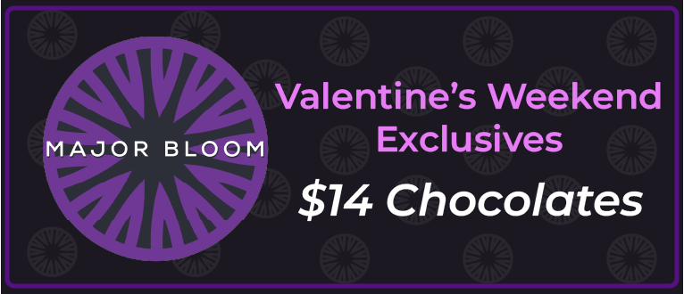 Valentine’s Day Exclusive: All 100mg chocolates are $14 this weekend only! Available while supplies last!