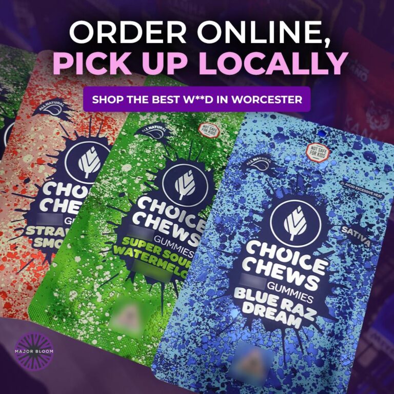 Major Bloom offers a wide selection of premium cannabis products, including flower, pre-rolls, edibles, concentrates, vapes, and CBD products. We also feature exclusive Major Bloom-branded strains and locally sourced items from Massachusetts cannabis producers. Visit our menu page to browse current offerings, pricing, and availability.